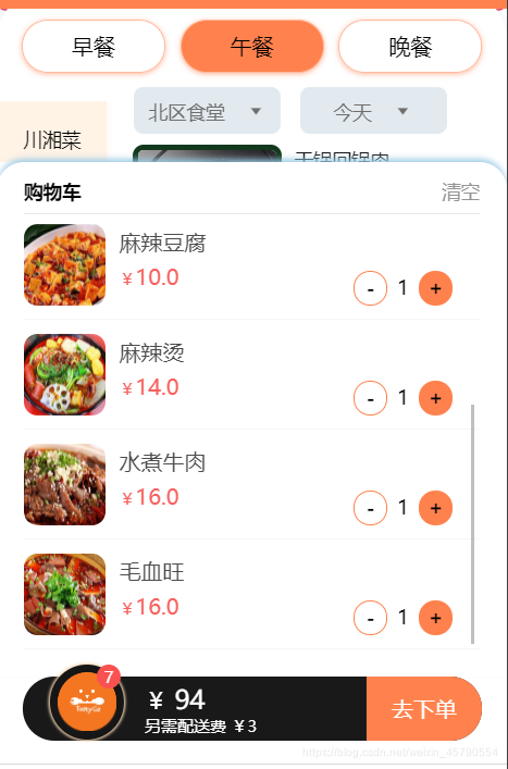 将商品添加购物车,打开购物车详情,在这一块区域滑动时,其底层会滑动,即滑动会穿透
